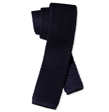 3. Krawat/krawaty wykonane z mniej formalnych materiałów. Na początek dobrym wyborem będzie jednolity granatowy knit. Sprawdzi się zarówno w zestawach marynarka+koszula, jak i kardigan+koszula. Dobre krawaty można upolować za grosze w secondo handach.