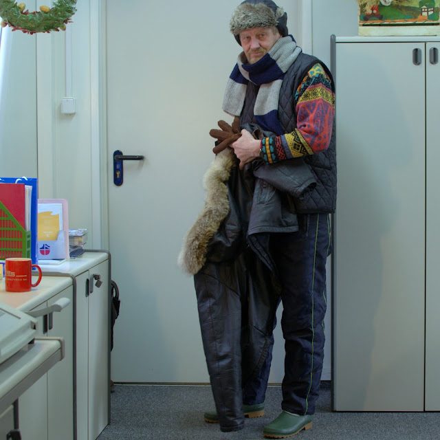 To co widzisz na tym obrazku to nie są żadne dresy, tylko klasyczne ocieplane spodnie narciarskie. Różnią się znacznie od współczesnej mody tym, że zwężają się do dołu. Przy silnych sztormowych wiatrach na mojej wyspie sprawdzają się doskonale.