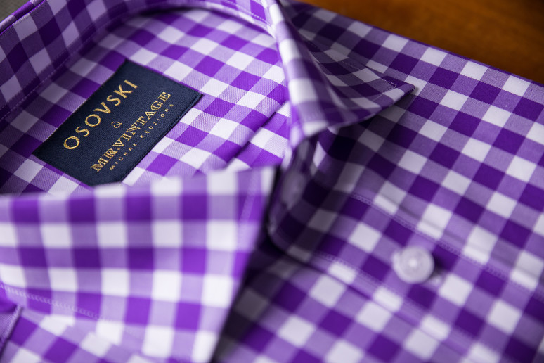 Fioletowe koszule raczej nie wywołują dobrych skojarzeń u sympatyków męskiej klasyki i w wersji jednokolorowej jest to całkowicie zrozumiałe, ale gdy tłem będzie biel, a fiolet tylko wzorem (krata, prążek, pepitka), to sprawa wygląda zupełnie inaczej. Pamiętam fioletową kratkę vichy, którą dwa lata temu wybrałem do kolekcji OSOVSKI & Mr. Vintage. Wydawała mi się bardzo ryzykowna, ale okazało się, że był to jeden z najlepiej sprzedających się modeli całej kolekcji, ale już model bardziej biznesowy, czyli prążek bengalski na białym tle był jednym z najsłabiej sprzedających się modeli. Takie koszule dobrze wyglądają z marynarkami i garniturami w kolorze szarym, brązowym, beżowym.