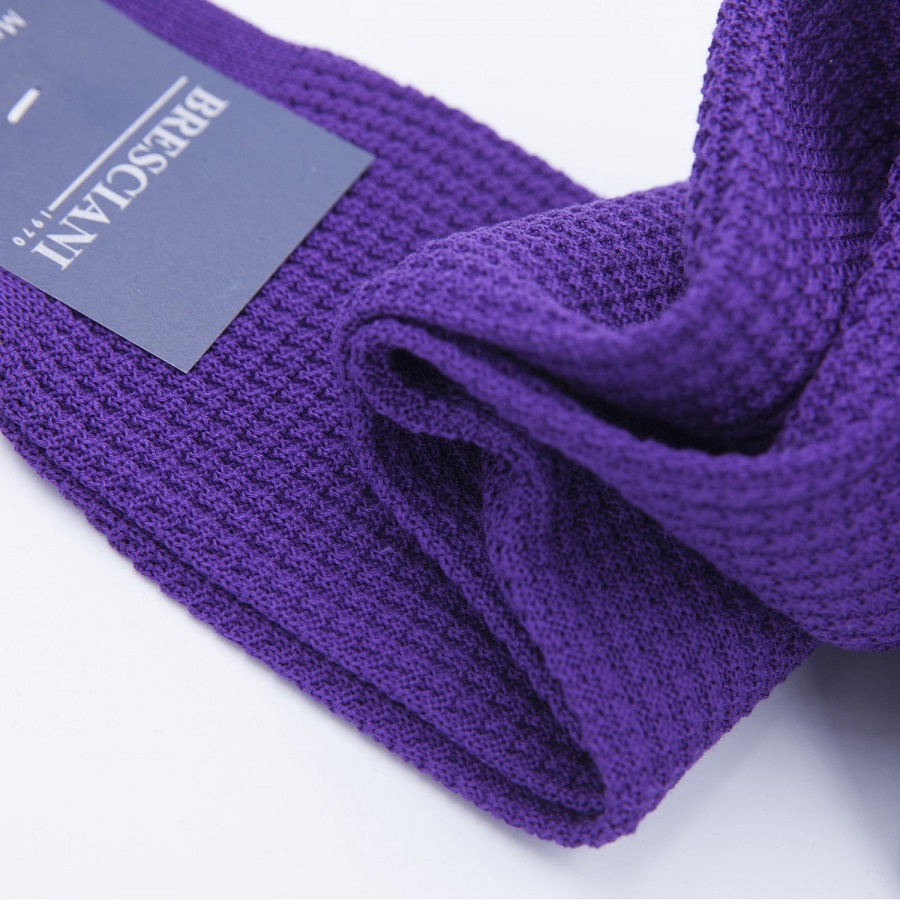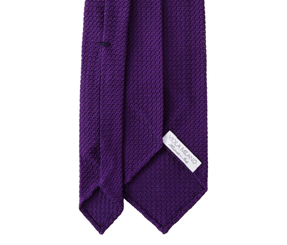 Bohater dzisiejszego wpisu znacznie lepiej wygląda gdy faktura krawata nabierze chropowatej i zgrubnej struktury, a można ją uzyskać na przykład na grenadynie, wełnie, kaszmirze, surowym jedwabiu (np. szantung). Wówczas fiolet staje się wytrawny, nie bije tak mocno po oczach, a i łatwiej go połączyć z garniturami i marynarkami. Gładki fioletowy krawat z dzianiny lub grenadyny może wyglądać oszałamiająco na tle białej koszuli i szarego lub brązowego garnituru.
