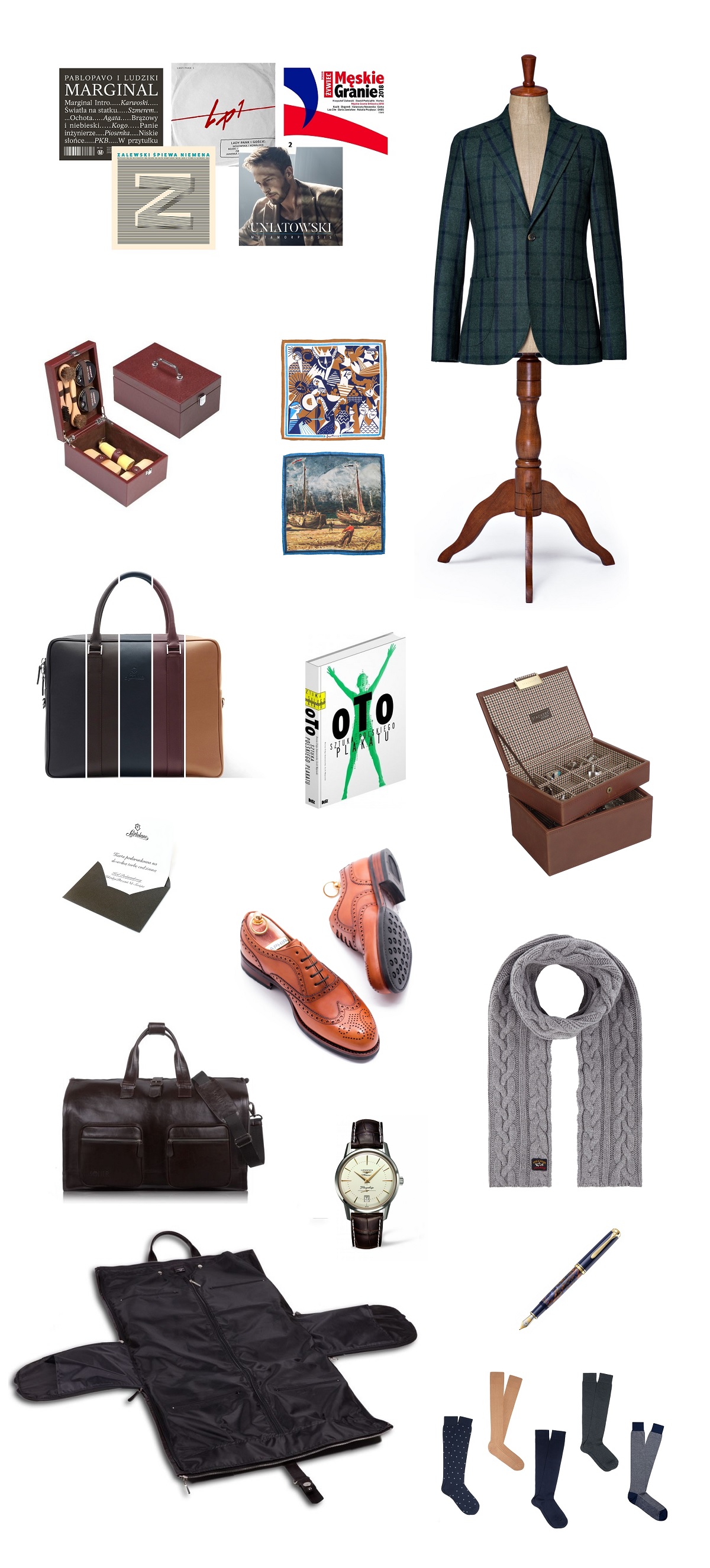 Rzeczowe poradniki dla mężczyzn, ok. 40 zł/szt. Bo współczesny dżentelmen powinien poszerzać horyzonty w wielu dziedzinach życia. Polecam m.in. te pozycje: „Rzeczowo o modzie męskiej”, autora dość znanego; „Z klasą, na luzie. Dobre maniery, zdrowy rozsądek i sztuka łamania zasad” Adama Jarczyńskiego; „Korek czy zakrętka” Michała Bardela; „Jak prowadzić” Bena Collinsa; „Etykieta w biznesie, czyli jak ułatwić sobie życie w pracy” Wojciecha Wocława; „Finansowy Ninja” Michała Szafrańskiego.