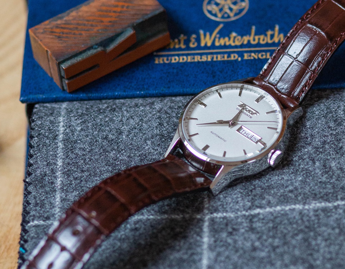 Moja rekomendacja numer trzy, to model Visodate 1957 Automatic marki Tissot, który jest inspirowany zegarkami z lat 50. Dostępny jest w kilku kolorach, ja wybrałem najbardziej klasyczną wersję – z białą tarczą. Bardzo dobra propozycja dla osób szukających uniwersalnego szwajcarskiego zegarka z automatycznym naciągiem w przystępnej cenie.