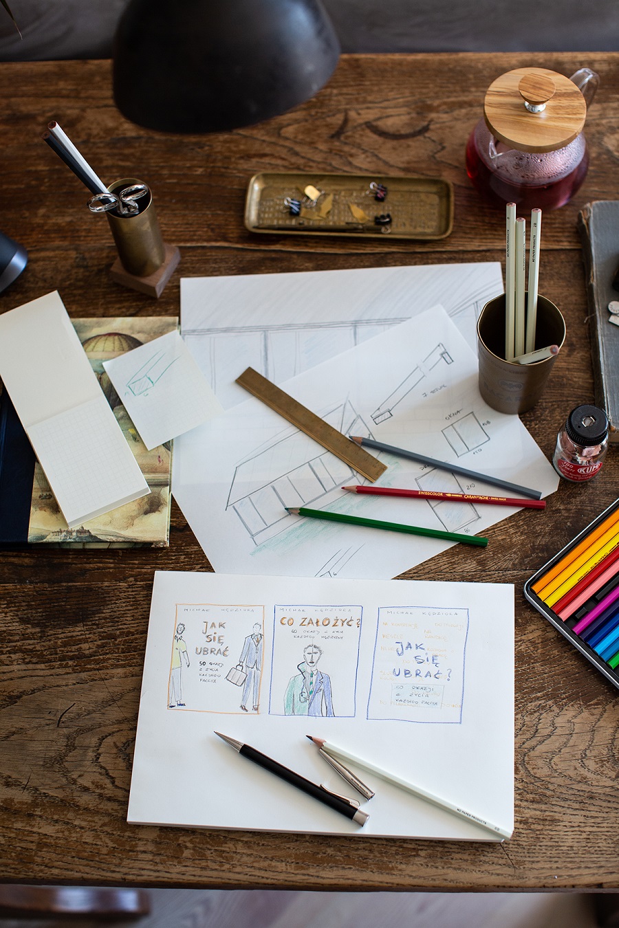 Na zdjęcia są m.in. ołówki MD Paper, kredki Caran D’Ache, papier MD Paper, karteczki MD Paper, strugaczka Kum.