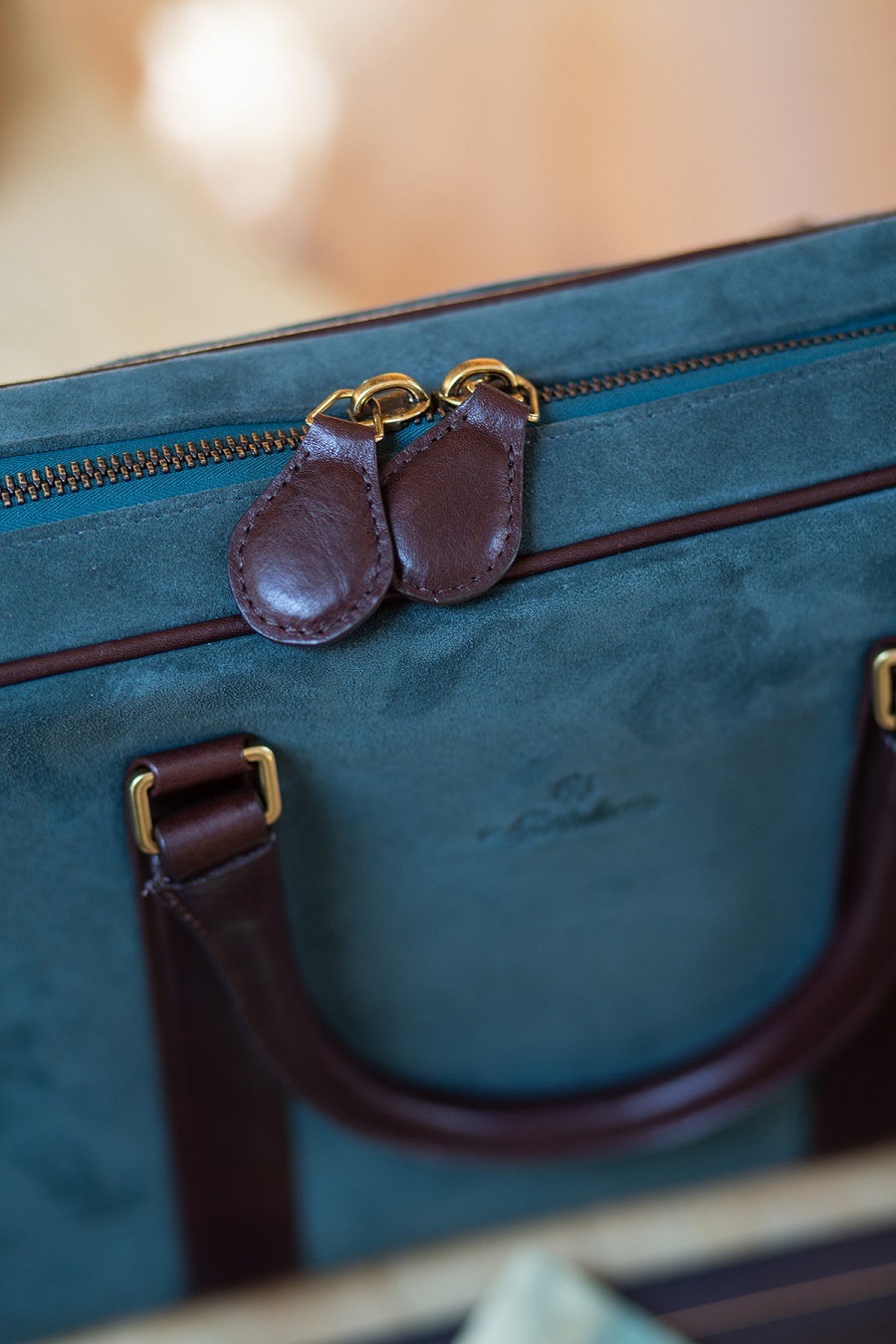 Projekt bazuje na najpopularniejszej torbie z portfolio Sartolane, czyli Torbie Codziennej – smukłej, o ponadczasowym kształcie i proporcjach, z bardzo dobrze zaprojektowanym wnętrzem. W limitowanej wersji pojawia się kilka ciekawych detali. Po pierwsze, piękny ciemnozielony zamsz, który w połączeniu z ciemnobrązową skórą bydlęcą (spód, paski, lamówka) wygląda znakomicie. Użycie zamszu sprawia, że torba ma mniej formalny charakter, nie jest tak „biurowa”, fani smart casualu powinni się ucieszyć. Po drugie, okucia i suwak w kolorze starego złota – ja jestem wielkim fanem metali w tym kolorze, więc cieszę się, że trafiły wreszcie do Sartolane. Stali klienci zapewne zauważą też nowy kształt uchwytów suwaka – szersze i wypukłe. Więcej szczegółów na stronie Sartolane.