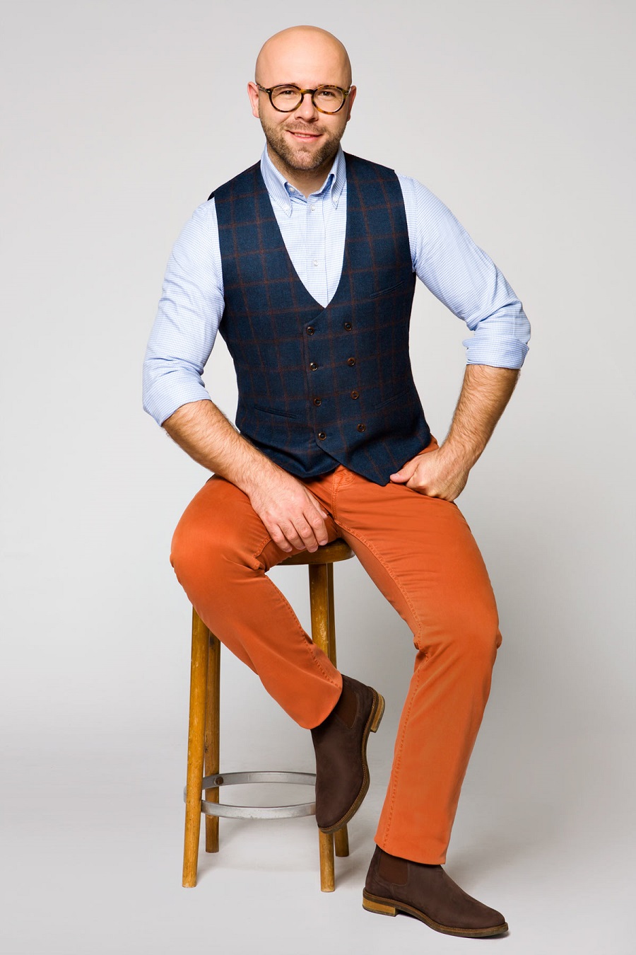 Piękne marynarki i kamizelki,szczególnie ciekawe to połączenie z pomaranczem… Panie Michale pytanie z inne beczki które mnie dręczy od dłuższego czasu;,czemu kiedyś /i teraz jeszcze,szyja koszule z szerokimi rękawami sam mam kilka i muszę sie ich pozbyć-choć ciekawe wzory. Ktoż to wymyślił ,przeciesz to nie pasuje nawet do budowy anatomicznej człowieka,jak można takie coś szyć i projektować -na chudego za obszerne na tegiego za krótkie ,wygląda to masakrycznie ,A wciaz tak szyja,Czy nie mozna na logikete 2 cm w obwodzie zmniejszyc.? Ps. Fakt pumpy też kiedyś były modne