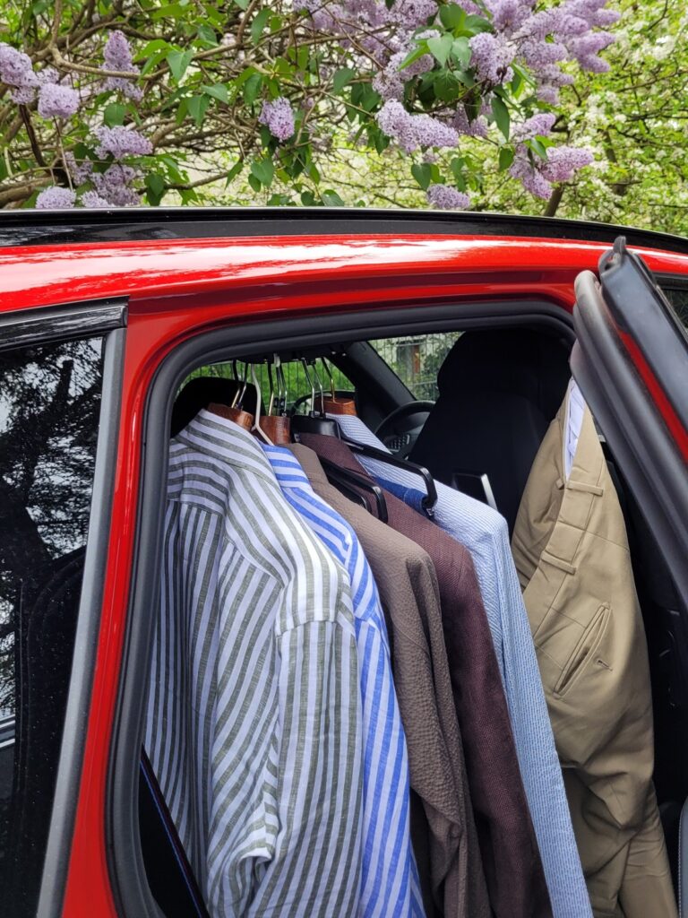 2. Do rozprasowania zagnieceń można użyć parownicy i/lub żelazka ze stacją parową, tylko wtedy trzeba krawat prasować przez szmatkę, z dużą ilością pary i nie dociskając stopy żelazka zbyt mocno.