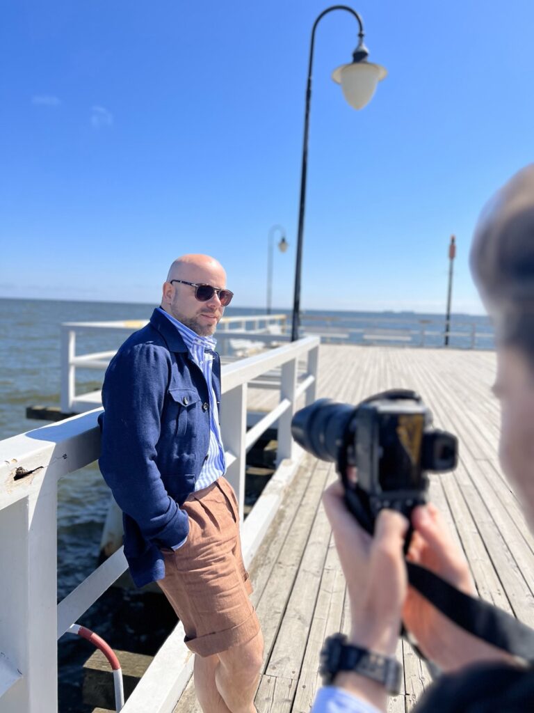 Na pierwszy rzut oka największe wrażenie robią… kąpielówki, które Tomek ma na sobie. To połączenie kolorów to rozum i godność człowieka, może kiedyś doczekam lnianej koszuli w podobnym wzorze :)