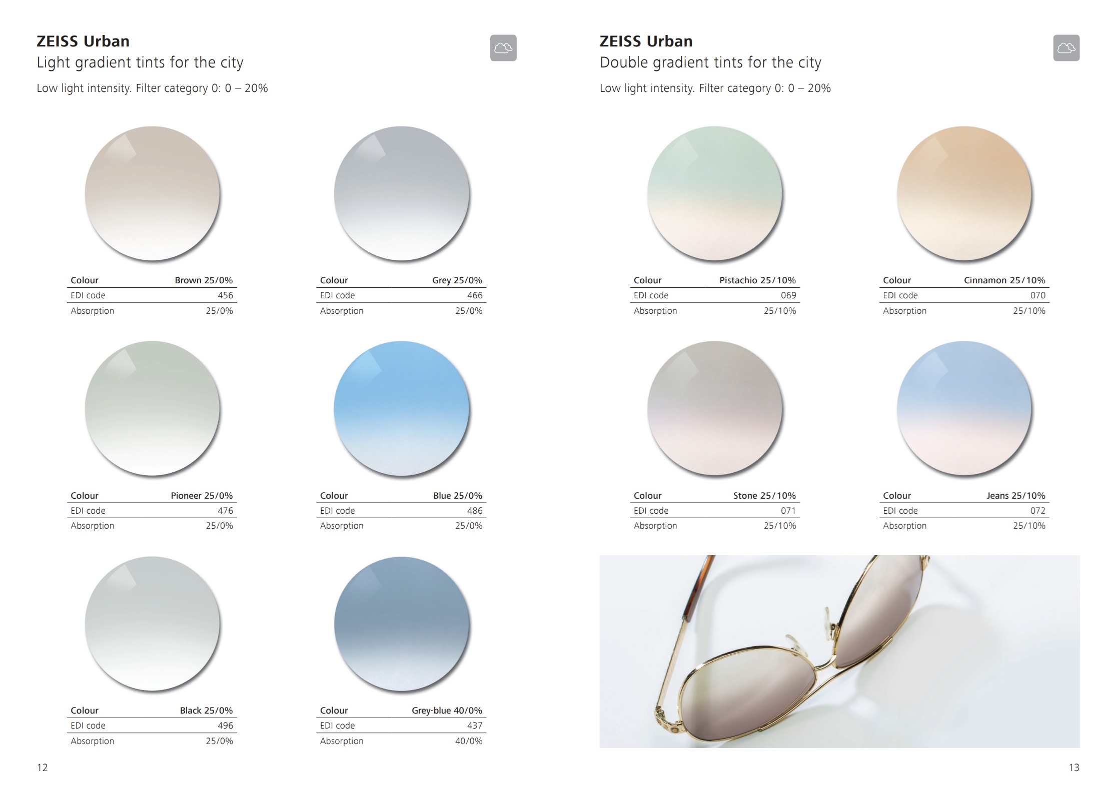 Przykładowe barwienia i gradienty z katalogu marki Zeiss