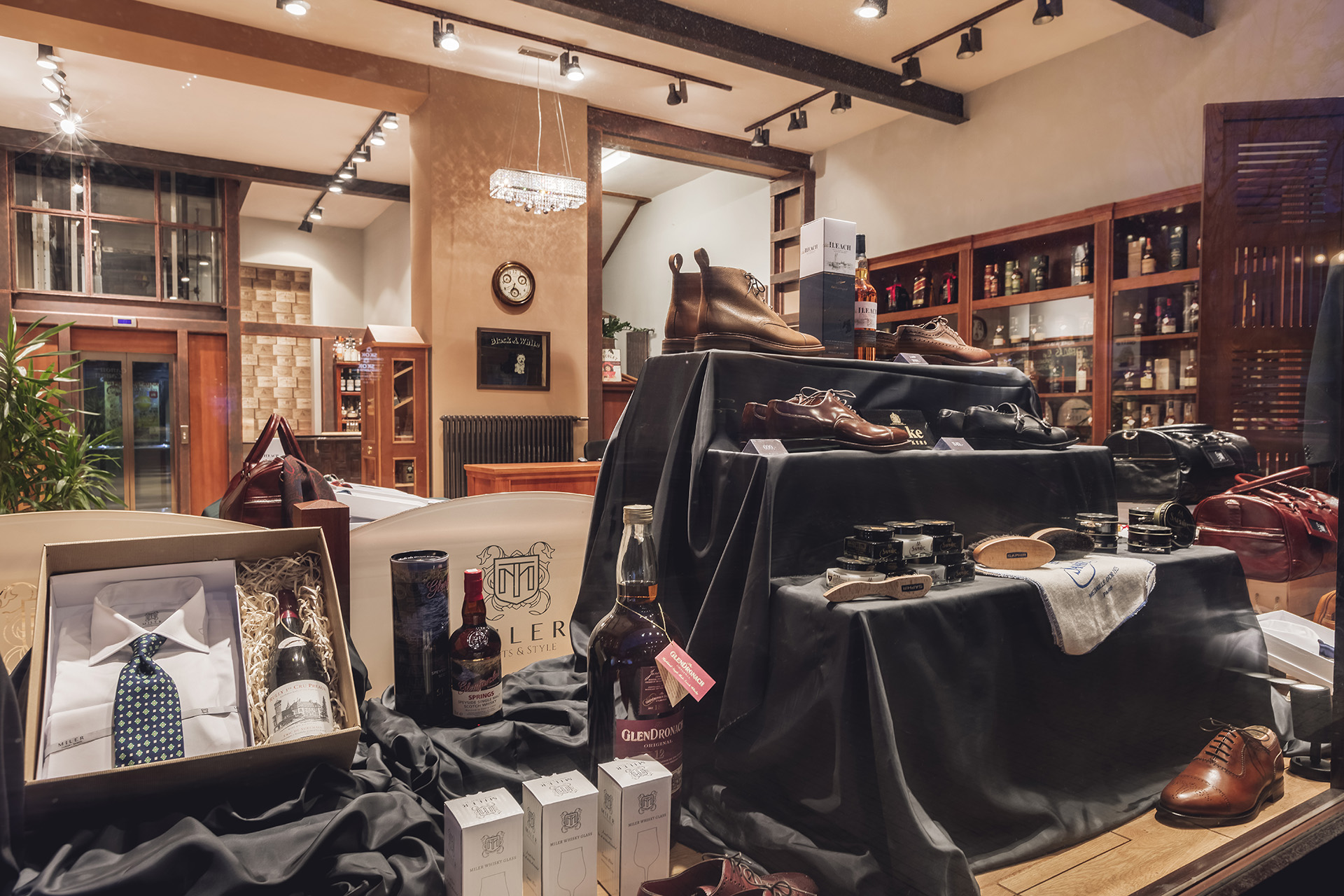 W Miler Menswear można się ubrać kompleksowo. Są to garnitury, marynarki, koszule, buty, akcesoria. Oprócz tego na miejscu świadczone są także usługi szycia miarowego.
